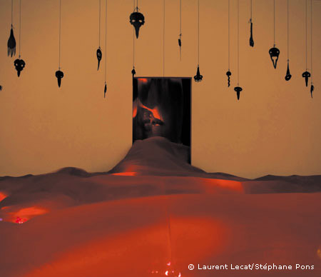 暗示小木偶 Pinocchio 被鯨魚吞進去肚子裡的魚腹展示﹔由在空中流動,最後慢慢落在地上的紅絲綢上,由裡面的大風扇造成的大浪。在紅絲綢裡的東西一個一個在呼吸,雖然被吞噬,但同時又甦醒過來,就像被賦予生命的小木偶。為了新生,成為一個有血有肉的人,Pinocchio必須要經過女性的子宮而重生的旅程。