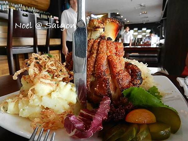 來德國餐廳當然不是吃香腸就是豬腳,我們點了豬腳... 一上桌有點嚇到... 我的天呀!怎麼這麼大呀!