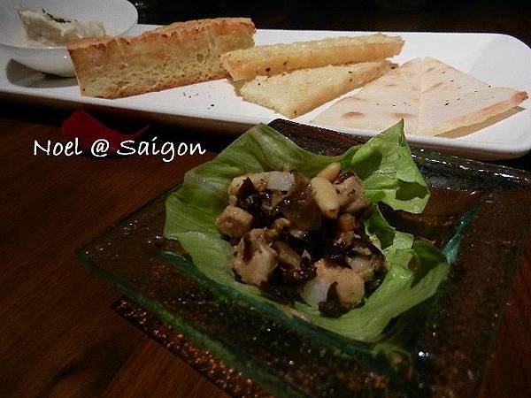 這是餐前小菜!沾麵包的豆醬很好吃!下面一口雞肉鬆也很好吃~