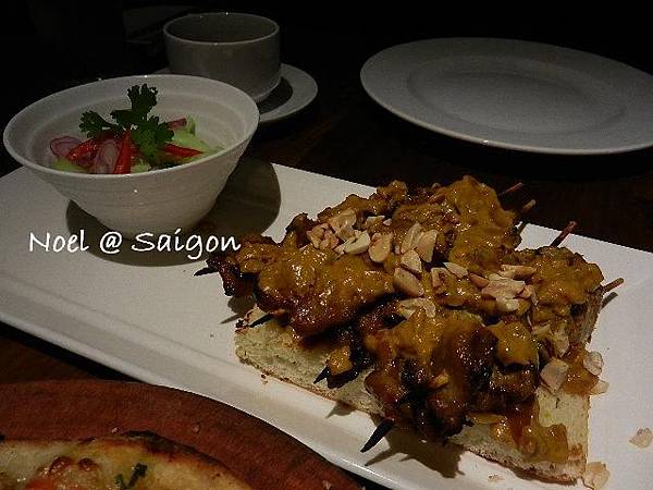 主菜之二︰Pork Satay配著淹青瓜﹔豬肉很容易從長簽弄下來!吃下去第一個感覺是「好嫩哦~」