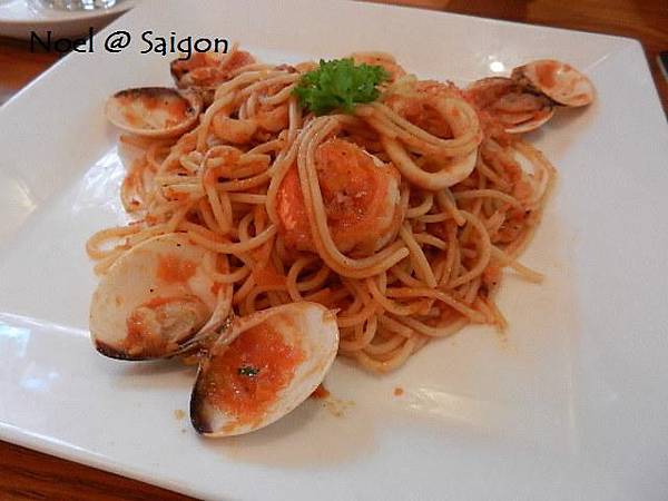 來了一道不是我們點的主菜︰Pasta Seafood!我以為我發音錯誤,把Pizza發成Pasta,但跟小花小姐確定過我是發Pizza... 好吧!就先吃好了!還是我家附近的比較好吃...