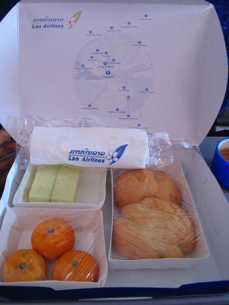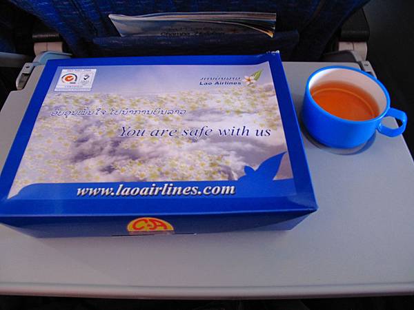 又上同一班機沒多久吃晚餐... 寮國航空特色的是... 餐點都是冷的!