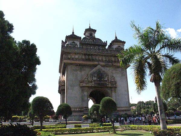 哈~ 一路順著走到凱旋門 Patuxay (Victory Gate) 愈上面愈涼,我們待在那邊蠻久的!因為天氣實在太熱了!