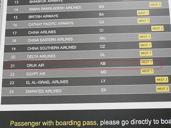 看到沒?Druk Air是在轉機櫃台WEST 1!!