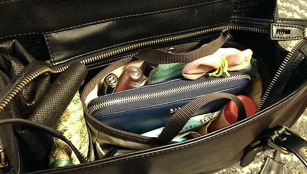 哈~ 我東西還蠻多的… 左右有小圈圈,如果有水瓶就可以穩穩的放在圈裡不怕東倒西歪!! 其實還有多餘的空間放公文!! 哈哈哈哈