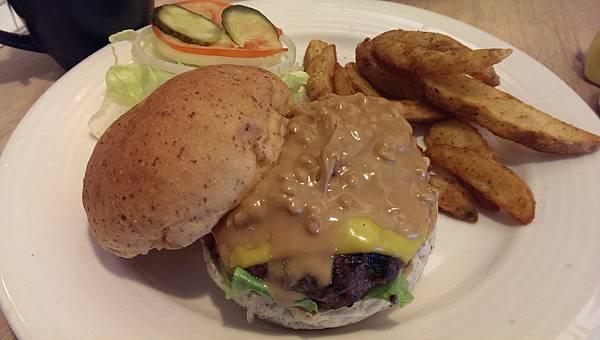 突然好想吃漢堡,上網估狗說這家好吃,於是和貴婦約一約就在它們開店時成為第一桌客人!! 由於是第一桌,所以可以拍到沒人的餐廳是怎樣!! 空間不太,但一到中午就全坐滿…